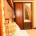 22м². В номере двуспальная кровать, тумбы, платяной шкаф, стол, стулья, кондиционер, телевизор, Wi-Fi, холодильник, эл. чайник, сейф, телефон, фен. Санузел: душевая кабина, раковина, унитаз, комплект полотенец, халаты, тапочки, туал. принадлежности.